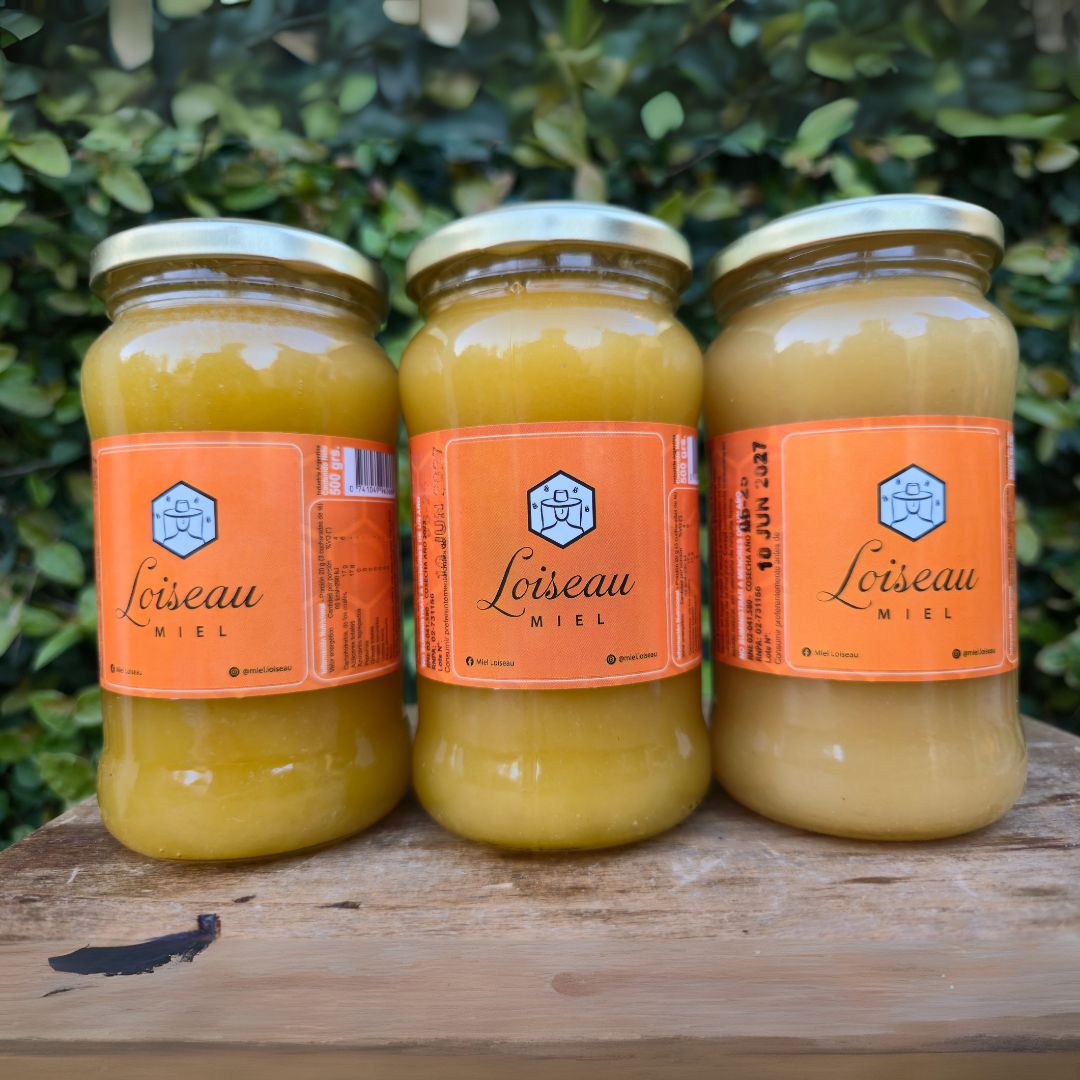 La Miel Cruda Pote de Vidrio 900g de Miel Loiseau ofrece una mayor cantidad de nuestra miel más pura y natural. Nuestras abejas, criadas en un entorno sostenible y libre de químicos, producen esta miel directamente de flores silvestres. El pote de vidrio asegura la conservación óptima de sus propiedades y sabor. Sin calentar ni procesar, nuestra miel conserva todos sus nutrientes y enzimas naturales, siendo ideal para el consumo diario en familia.